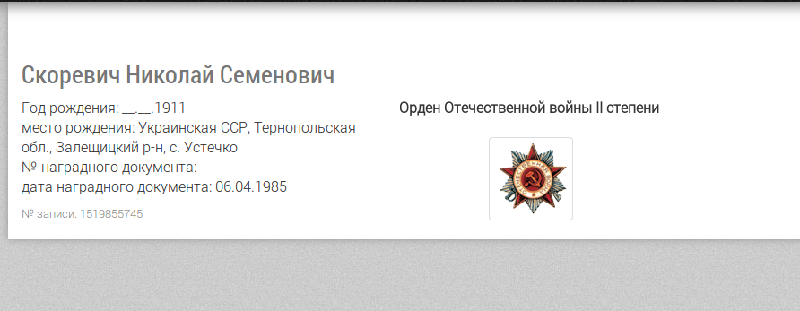 Цитата marina4792 (  ) nisse, большое спасибо за ответ! Я думаю, что это он! А есть еще какие-нибудь документы? Может мне в какой-то архив обратиться? Можете ещё запрос в ЦАМО на предмет награждений сделать запрос. Но на "Подвиге народа" по нему наград нет. Впрочем, там не все награды - видимо, деньги на проект закончились