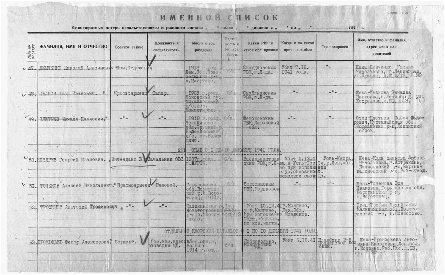 Добрый день! Mruslik, вот какое дело -военкомат по месту жительства а точнее его помещение все роздано в аренду, а новый военкомат это каптерка два на два и сказали мне - какие дела какая карточка, мол вы видите самим негде развернутся какой архив и т.д. пишите запрос в ЦАМО РФ ! А в госпитале дед небыл бабушка говорит что его при ранении выходили неизвестные дед и бабка! Короче говоря все равно несдаюсь Буду надеятся что когдато попаду в Подольск в ЦАМО! Спасибо!!!
