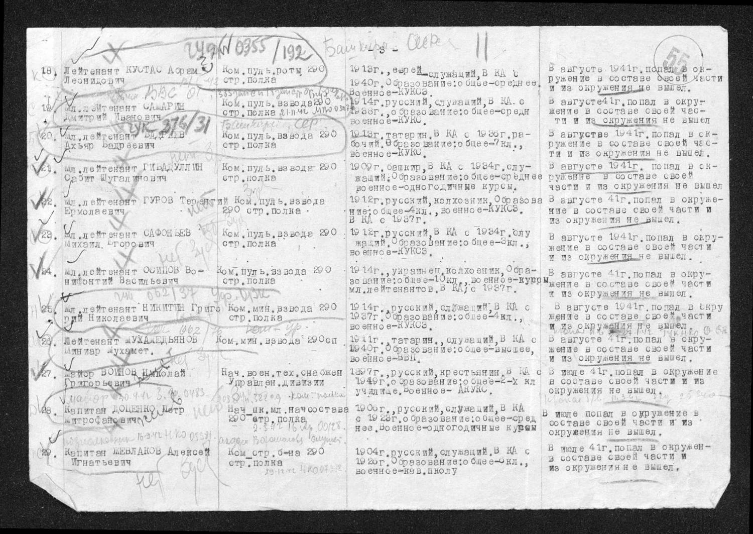 Выписка из военного билета: 211. воздушно десантська бригада, стрелок, с 10 октября 1940г. - по октябрь 1941г; 198 стрелков. полк, с март 1941г. - по октябрь 1944г; 200 Гвардейской стрелков. орденна Кутузова полка, октябрь 1944г. - по июнь 1946г; Закончил войну в городе Вудапешт, в районе озера Балатон. Имеет награды. Ящо есть еще какие вопросы спрашивайте. Заранее большое спасибо !!!!!