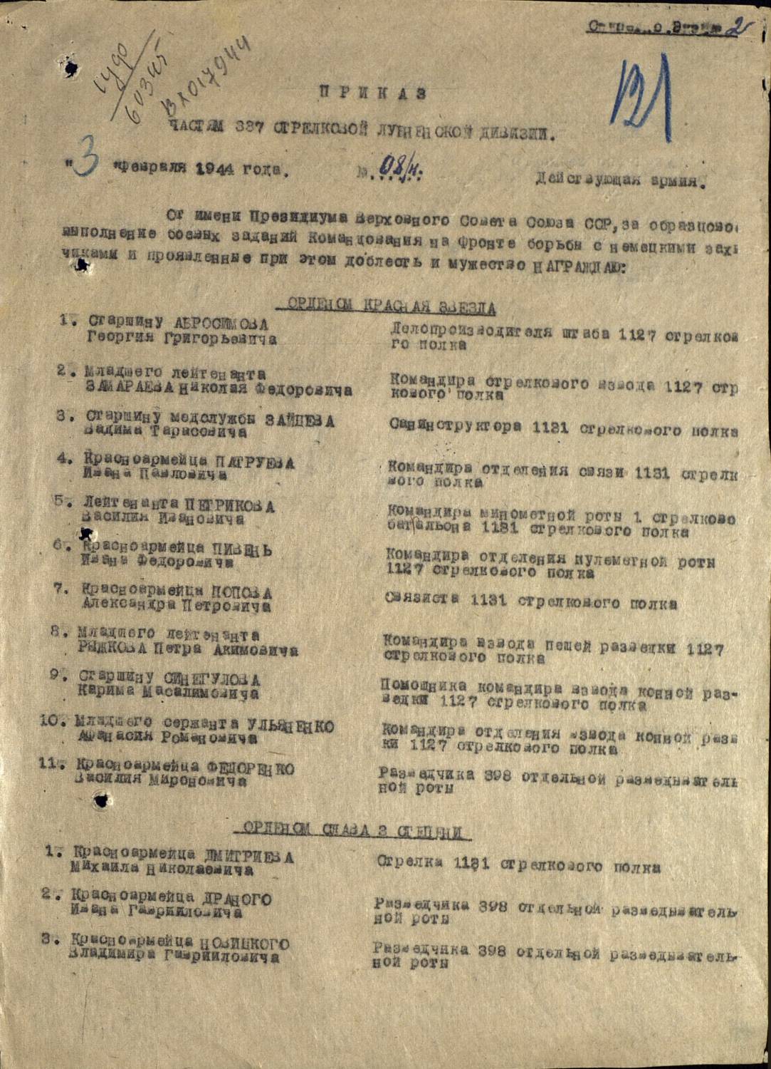 Огромное спасибо Вам за помощь! У нас интернет провели недавно с апреля 12г. по этому мы еще учимся с ним обращатся и с не которыми сайтами не знаем как работать. Благодаря Вашем первому сообщению я узнал судьбу родного брата моего дедушки ЧЕРНЫХ АЛЕКСАНДР Ефремовича, который воевал в 130 СД, 371 СП. И погиб в бою 18.10.1943г. Я сегодня видел список погибших солдат и место его захоронения в Запорожской области, Приазовский р. с.Кр.Двиновка. Но просмотрев список сел этого района я не обнаружил такое село. Возможно оно перестало существовать, а братские магилы перенесли. У нас такое было на Украине. Обратимся в администарцию этого района и уточним где находится его магила. А связавшись с родными на Урале, уточним действительно ли это наш двоюродный дедушка. Если факты подвердятся. Обязательно посещю его магилу. это недалеко от нас , Так-же я знаю что Францию освобождали союзники и они не весь арив концлагерей передали в Москву. Может там есть сведения о дедушки Васе. у вас есть адрес этого архива или кому можно обратися, а так-же адрес украинской диаспоры во Франции. Они ухаживают за магилами умерших в конлагере, установили там памятный крест. Может они помогут найти точное захоронения дедушки Васи.В Подольском архиве наверно кроме учетной карточки ничего нет.Мы туда запрос послали, обещали ответить в сентябре.Еще раз большое спасибо за Ваше благородное дело. Низкий Вам поклон от потомков ЧЕРНЫХ Василия Ефремовича.