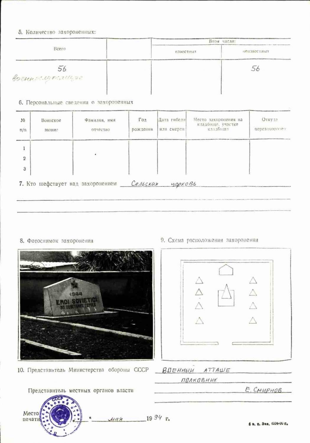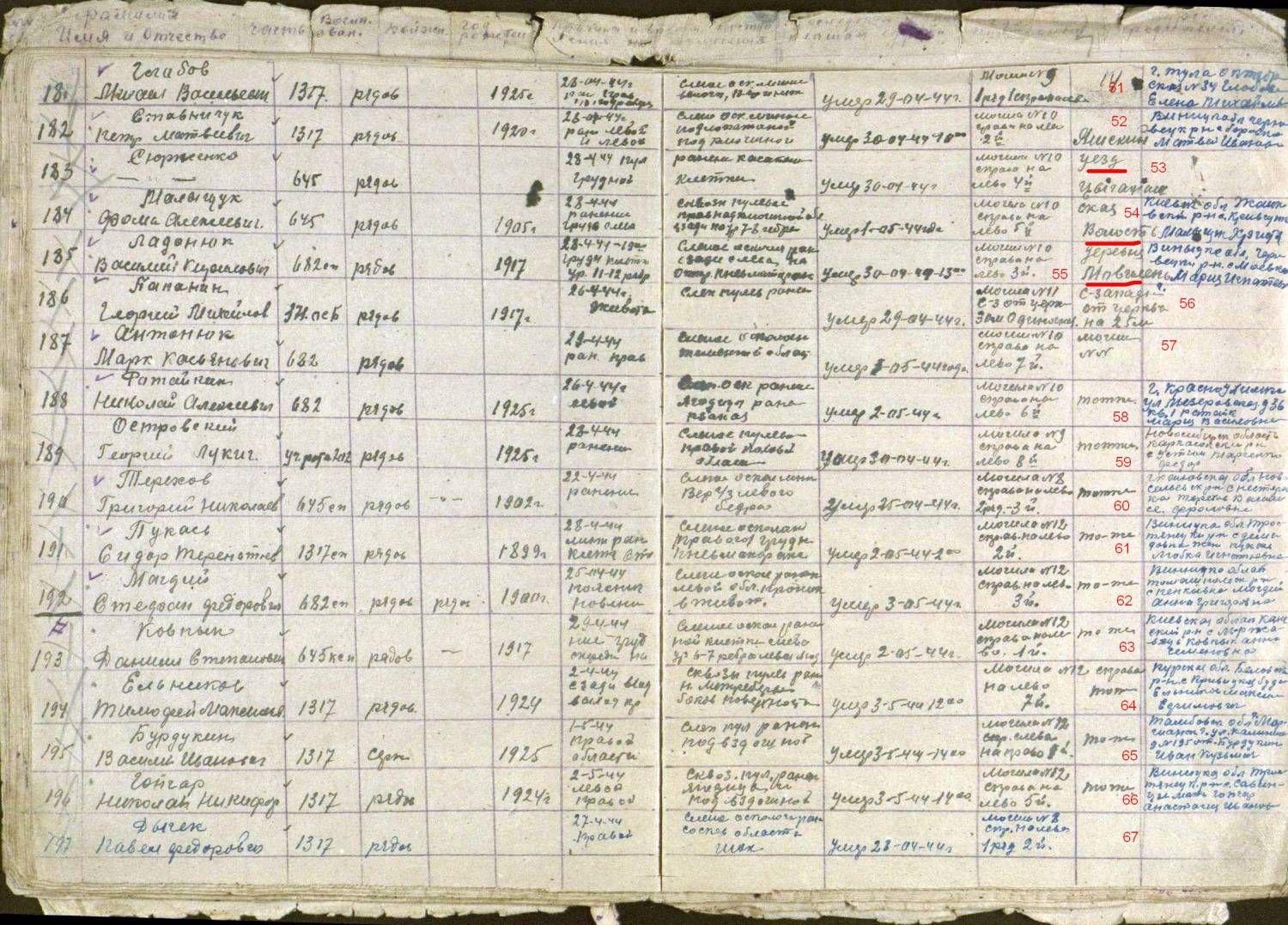 Я все пытаюсь установить что нибудь про деда и иду разными путями. через захоронения в МОВИЛЕНИ- так такого нет на Мемориале.А по медсанбату похоронено 88 человек . Где могилы? Ларга - Жижия захоронение есть , а кто не известно . Связывался с уполномоченым человеком в Румынии он дал список 33, я нашёл до 41. Но там судя по плитам более 100 захоронено.