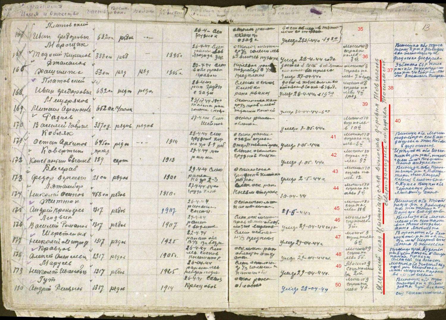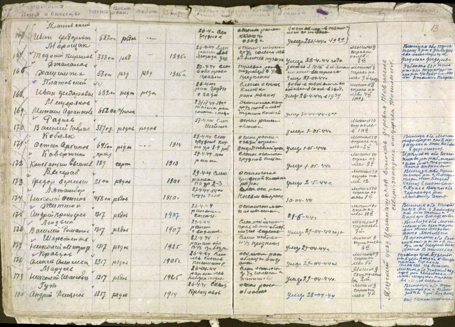 Большое спасибо за совет, мы уже обратились на сайт Саксонского мемориала и обязательно напишем письмо в Федеральное архивное агенство. К сожелению я не знаю немецкий язык и не смог перевести записи на второй стороне учетной легерной карточки, а именно: что написано под лагерным № 11866, что написано за цифрами 15.8.42 31.8.42 11.10.42 и 30.10.42 Я это понимаю как перевод в лагерные команды, а в какие? Еще раз извенити за беспокойство. У нас мало опыта в поисковой работе, по этому вынуждены обращатся к вам. С наилучшими пожеланиями.