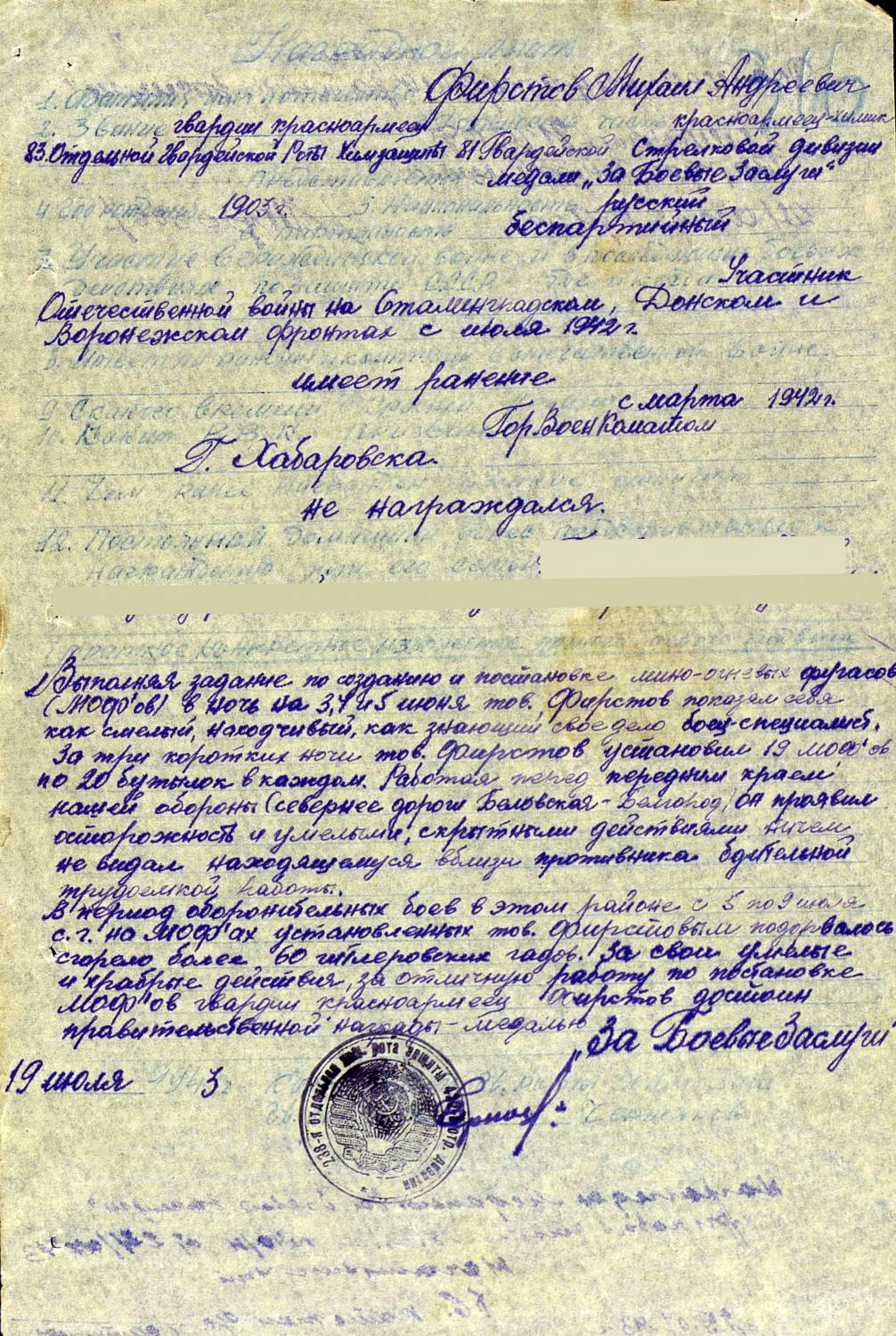 Добавлено (09.05.2013, 13:16) --------------------------------------------- Хочу еще попросить в помощи о данных деда моего мужа и моего дяди: 1. Шамонов Семен Иванович 1912 г.р. Был призван из Свободненского района Амурской области. Вернулся живым. Инвалид ВОВ 2. Фирстов Владимир Михайлович. Призван из Хабаровска. Инвалид ВОВ. Вернулся живым без ноги.