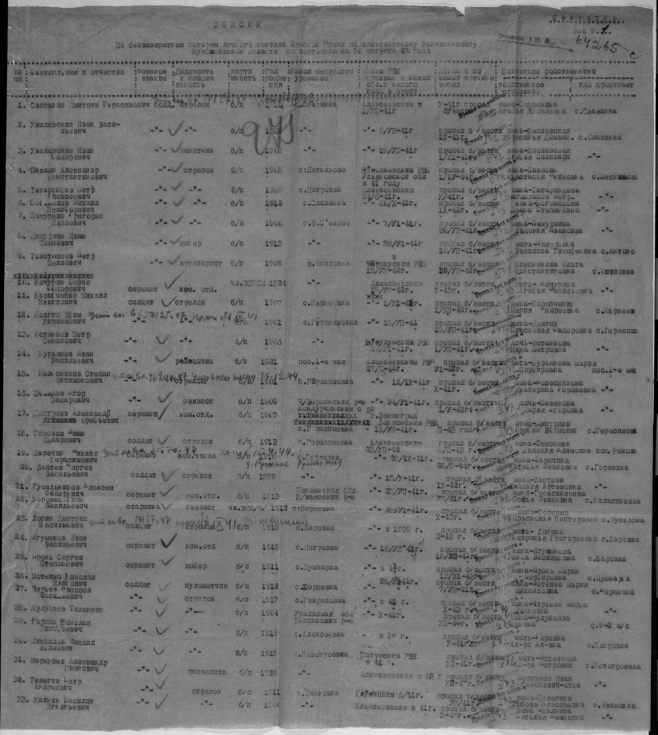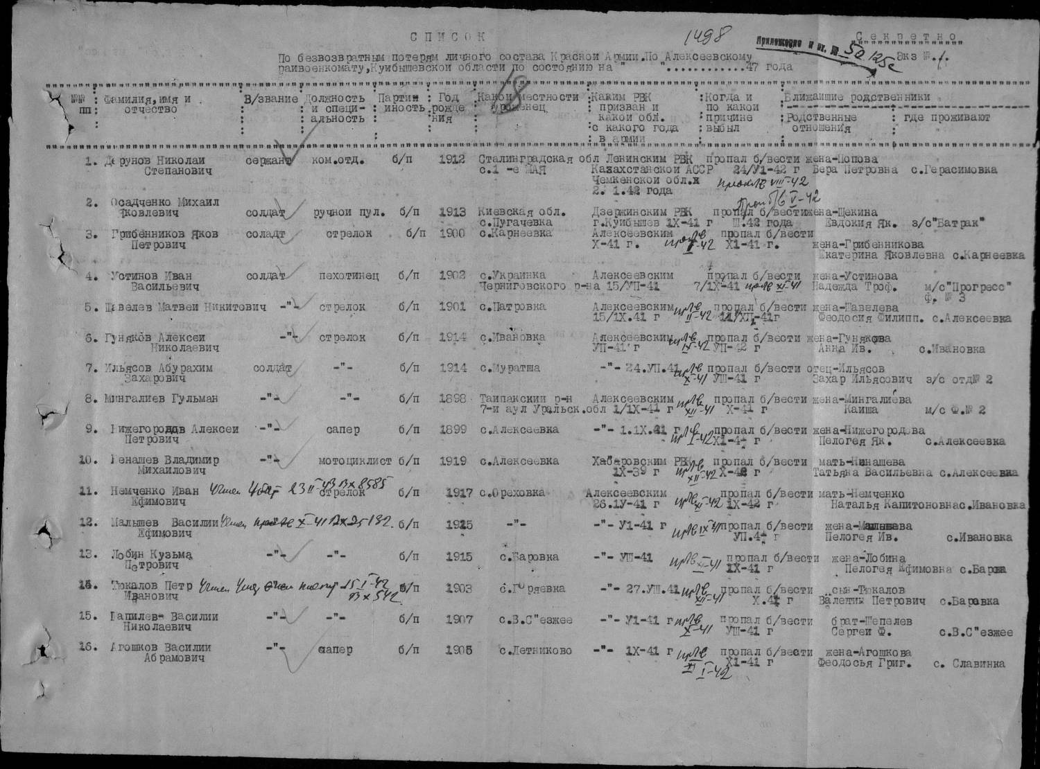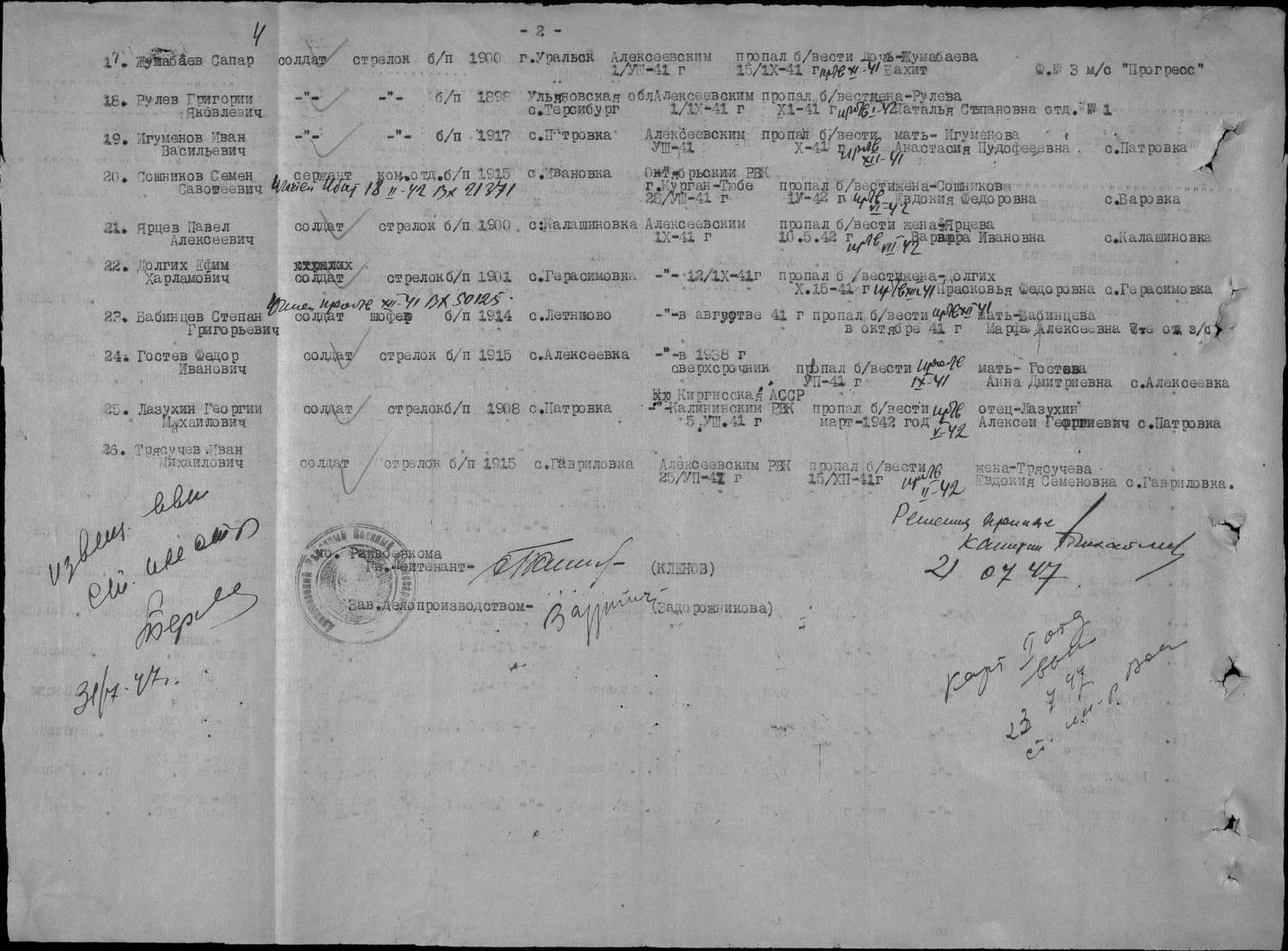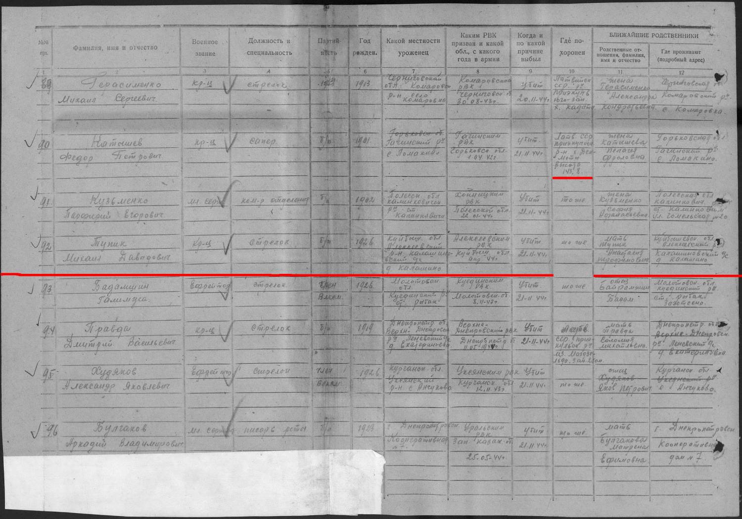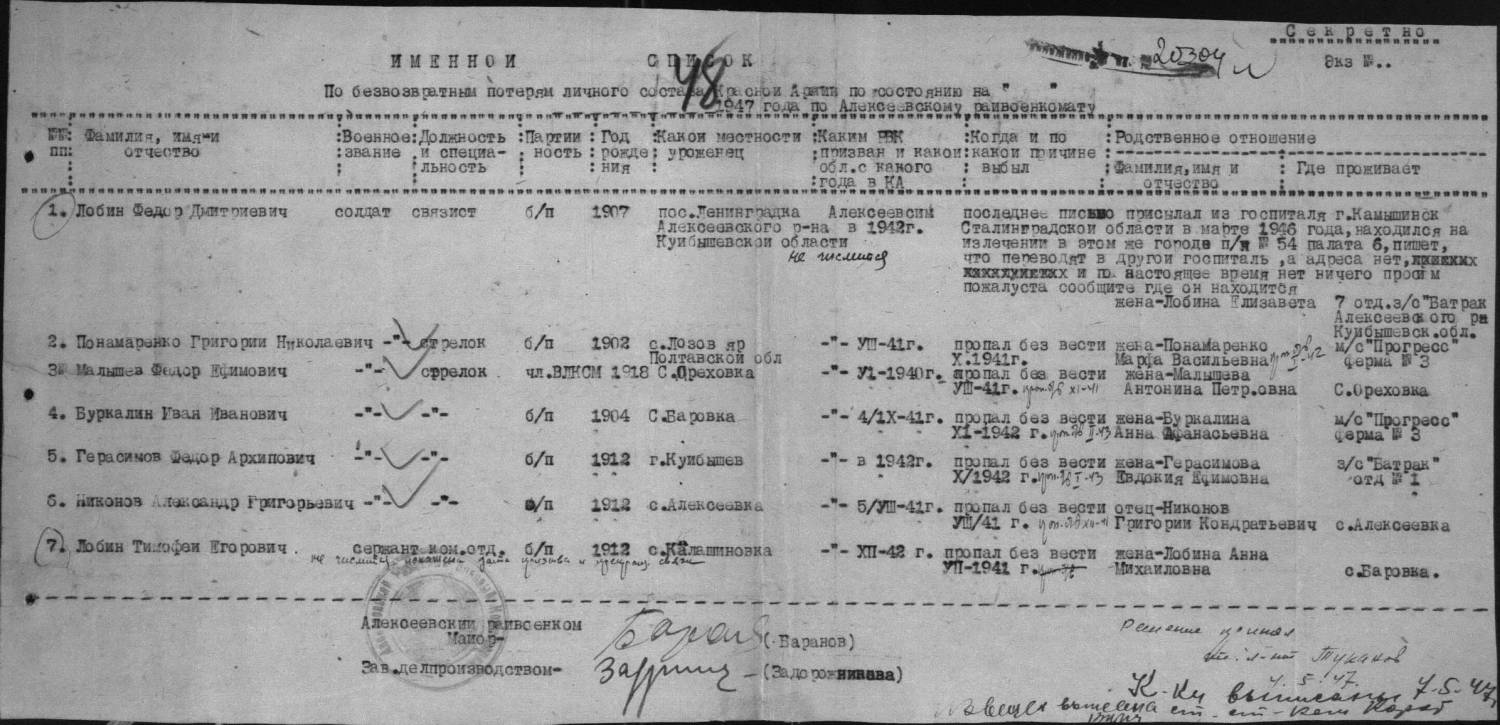 Всем добрый вечер! Ищем информацию - Алексеевский райвоенкомат: Шлепов Федор Васильевич 1912 г.р. погиб в в сентябре 1943 г., Юрченко Василий Николаевич, 1922 г.р. погиб в 1943 г.похоронен в д.Б.-Верешковичи Смоленской области. Устинов Иван Васильевич 1902 г.р погиб в ноябре 1941 г. Тупик Михаил Давыдович 1926 г.р. погиб в 1944 г, похоронен в д.Декиоры Латвия.