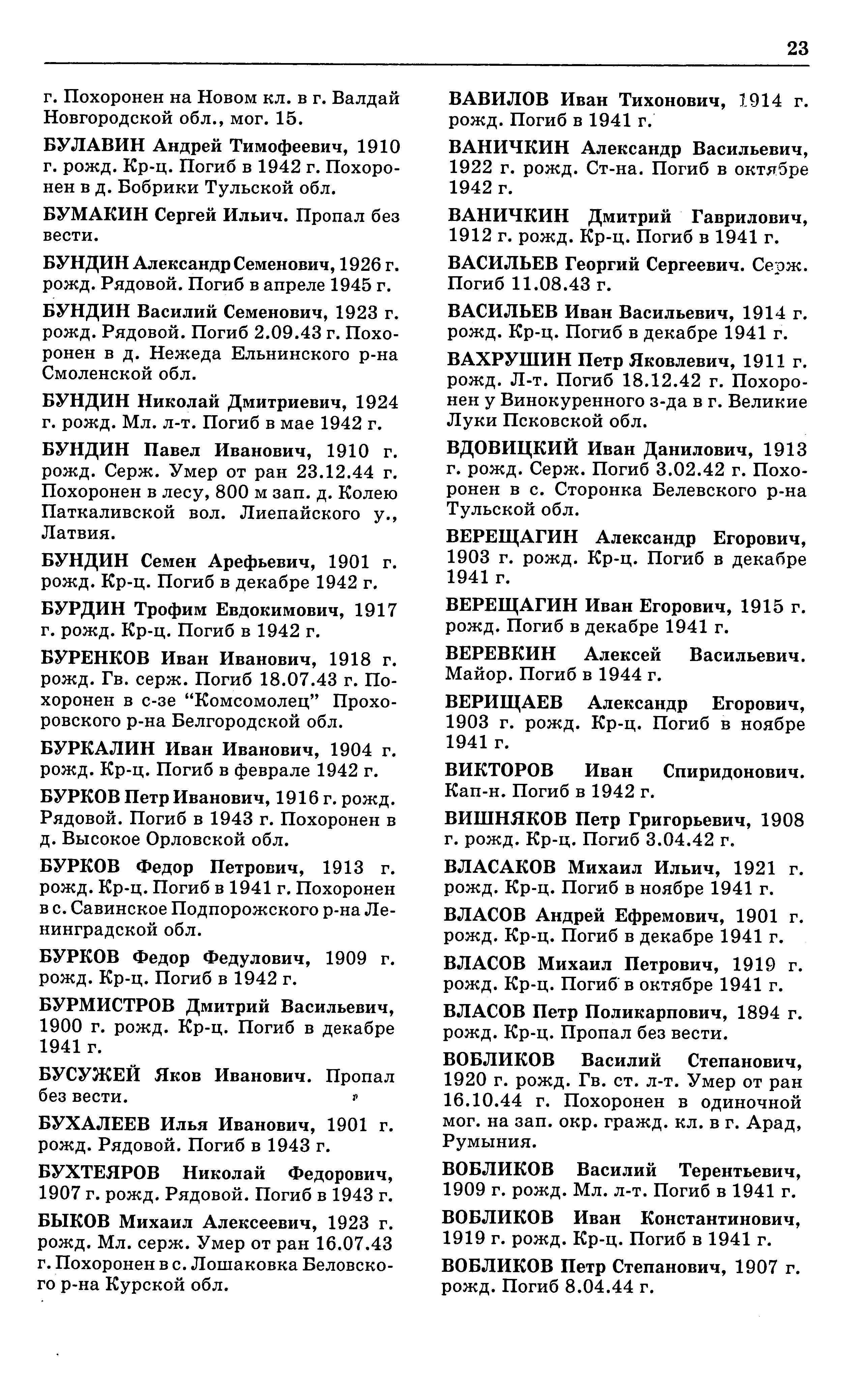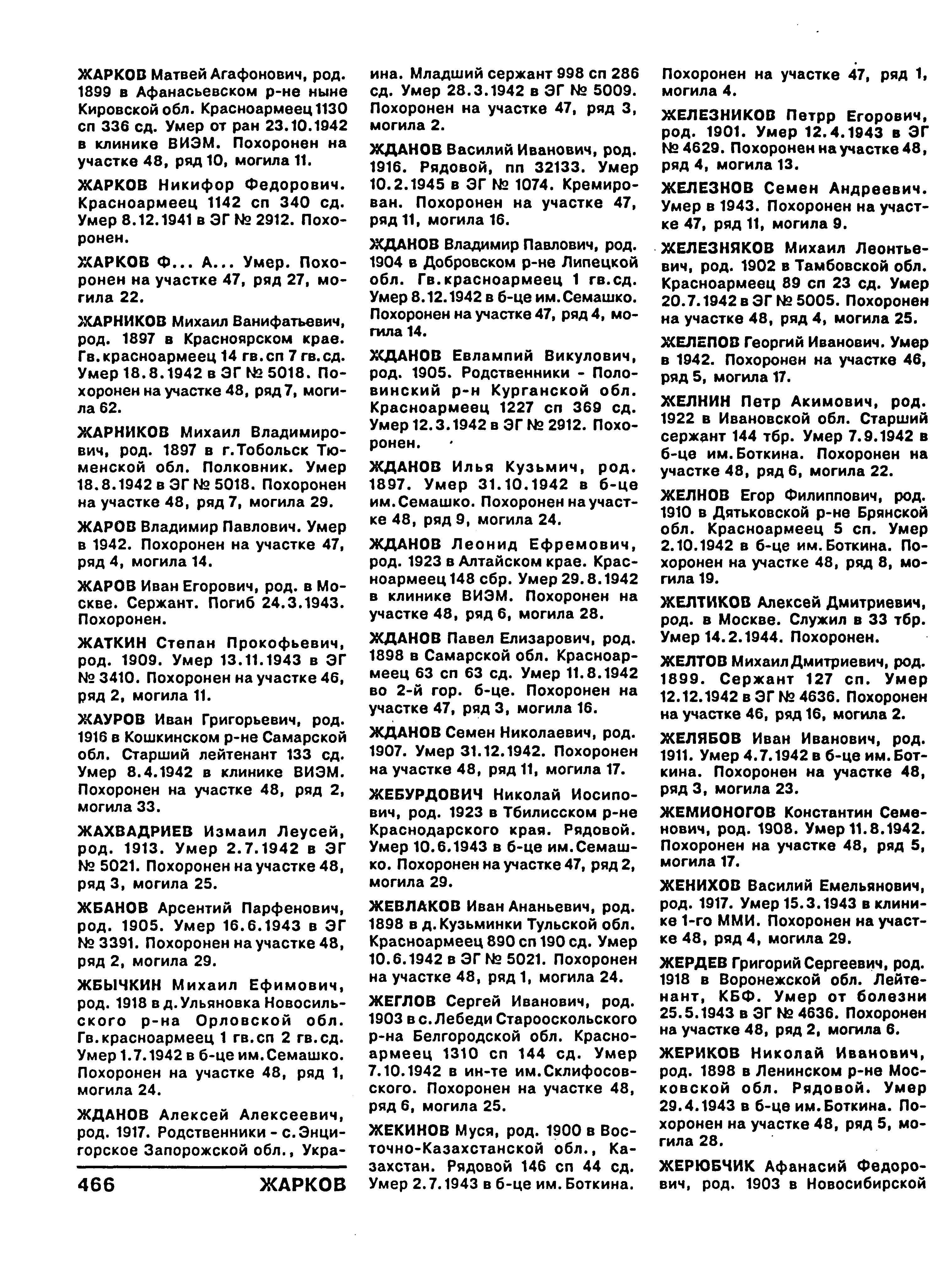 Фамилия ЖДАНОВ Имя Павел Отчество Елизарович Дата рождения/Возраст __.__.1898 Дата выбытия 11.08.1942 Название источника информации Книга памяти. Москва. Том 16