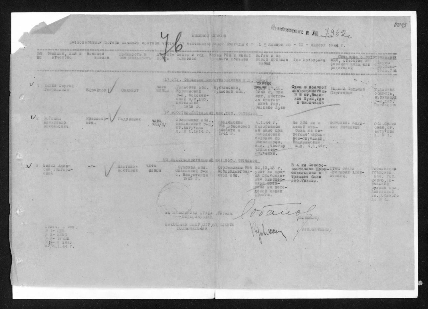 Выбытие: Причина смерти Дата смерти 17/02/45 Область выбытия Место выбытия