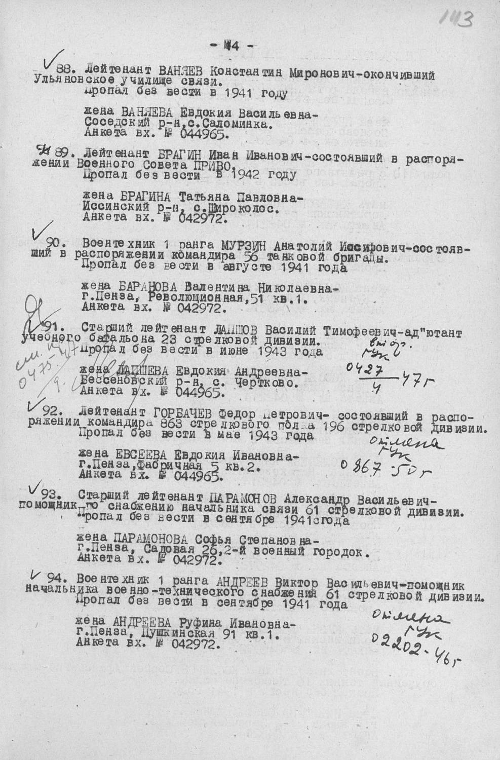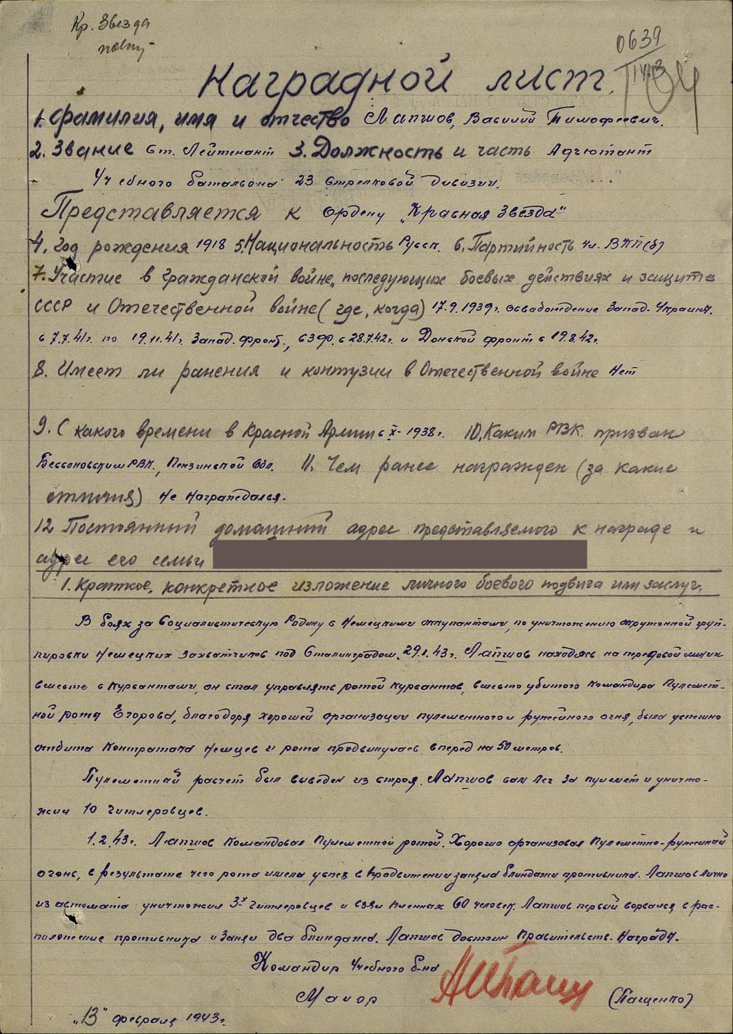 т34-85, Орден Красной Звезды Лапшов Василий Тимофеевич год рождения __.__.1918 в РККА с __.10.1938 года место призыва: Бессоновский РВК, Пензенская обл., Бессоновский р-н.
