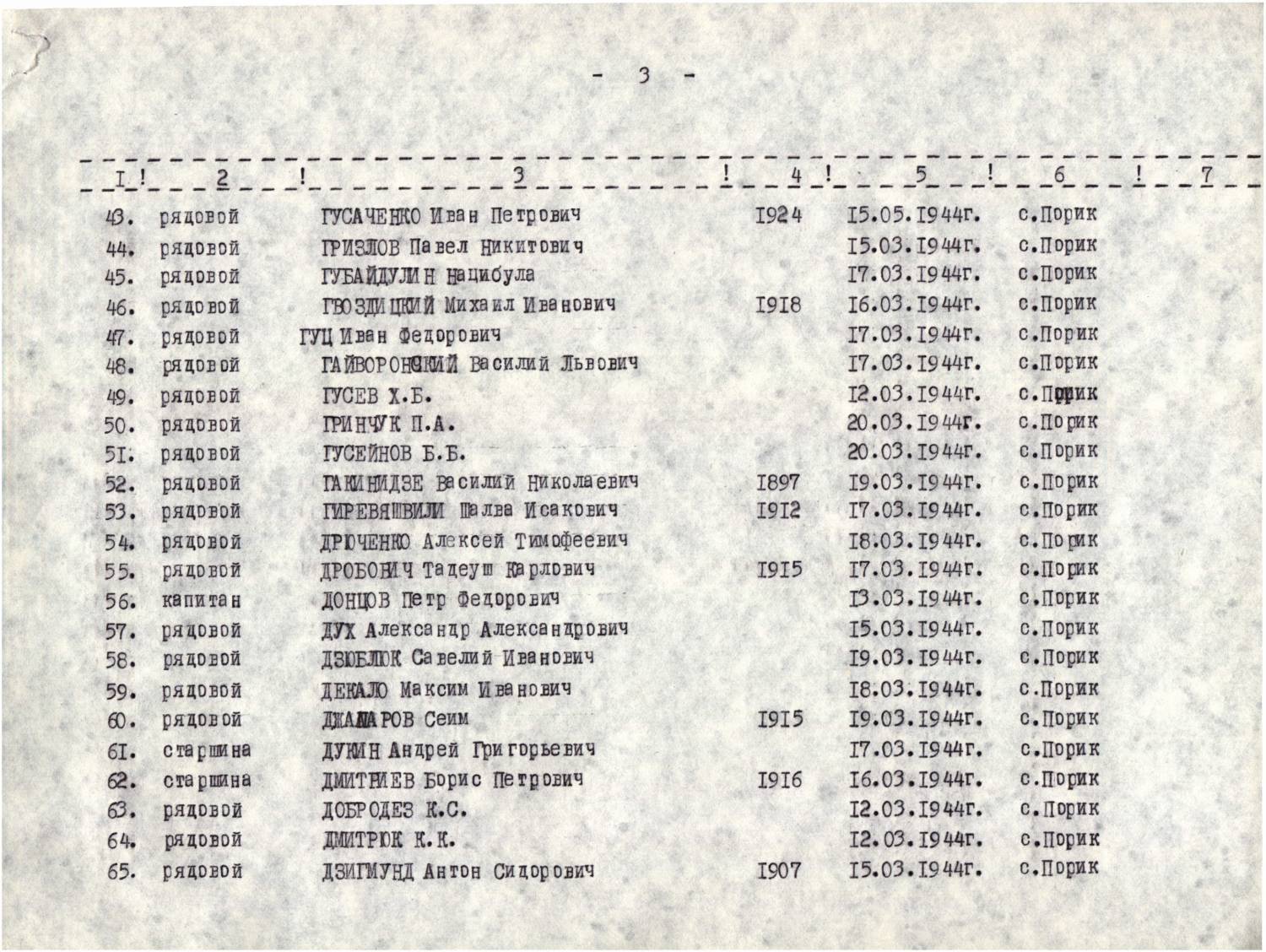 Фамилия Гусаченко Имя Иван Отчество Петрович Дата рождения/Возраст __.__.1924 Воинское звание рядовой Дата смерти 15.05.1944 Страна захоронения Украина Регион захоронения Винницкая обл. Место захоронения Хмельницкий р-н, с. Порик