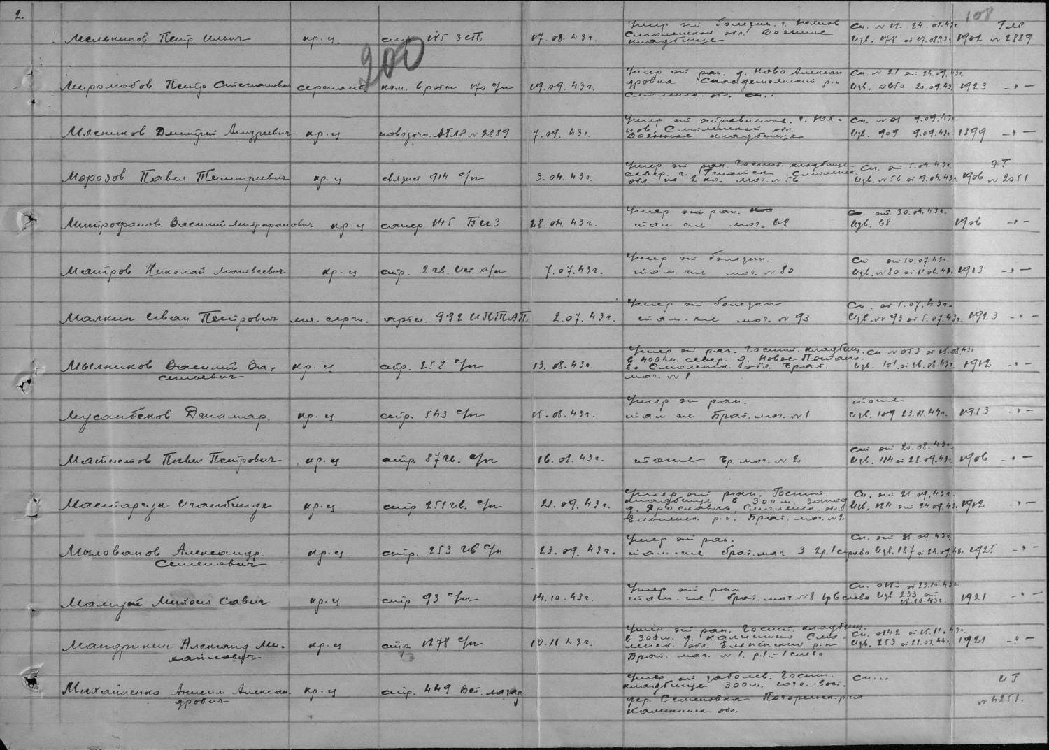 9VISHINKA9, спасибо за помощь, но бабушка говорит, что брат погиб в 1942 году и умер от ранДобавлено (12.05.2013, 10:00) --------------------------------------------- В Мемориале я уже искала, ничего не нашла подходящего, планирую запрос направить в ЦАМО и Архив военно-медицинских документов