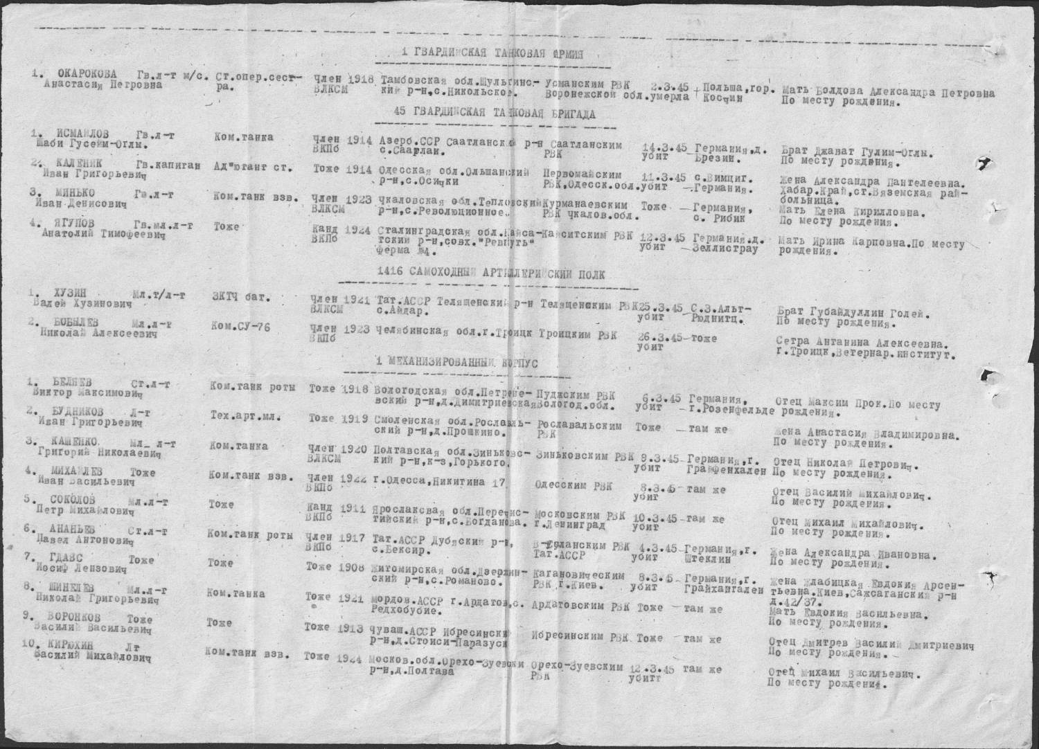 Здравствуйте! Большое Вам спасибо! Мой отец при жизни не успел найти данные о своем старшем брате. Вы делаете благородное дело и дай Вам бог всего самого наилучшего.