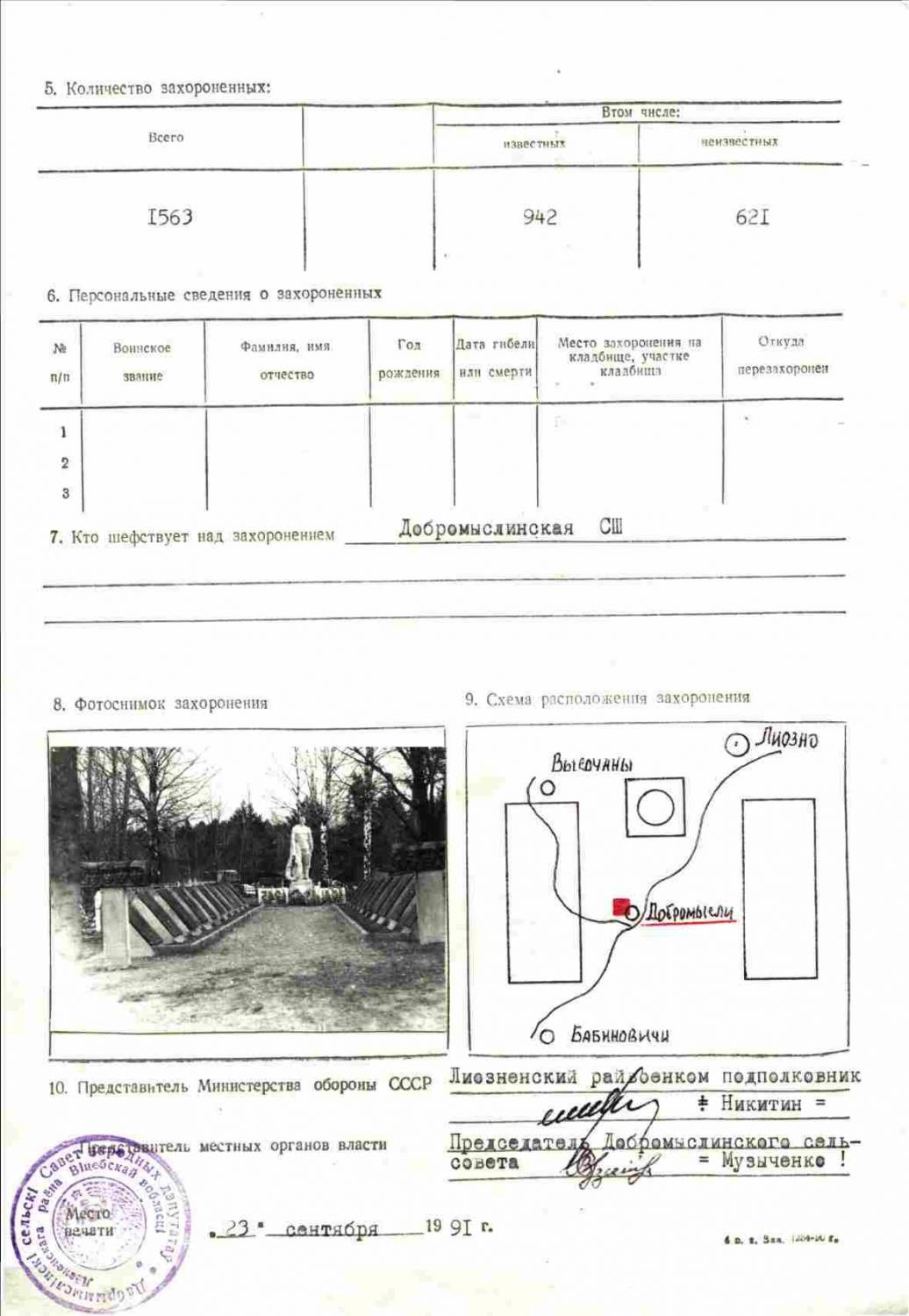 всем доброго времени суток уважаемые форумчане.нужна ваша помощь.ведется розыск места захоронения морозкина александра ивановича 1897 гр. уроженец орджоникидзевского (ныне ставропольского) края александрийско обильненского р-на (ныне георгиевского),призван александрийско обильненским рвк (ныне георгиевский). последнее место службы 5-я гв кав див 24 гв кав полк. убит 20 мая 1942 в районе села веселое харьковской обл,возможно великобурлуцкого района. оставлен на поле боя. информация из донесения о безвозвратных потерях 5-й гв кав див 24-го кав полка, в районе была братская могила. в настоящее время этого населенного пункта на карте украины нет, в следствии отсутствия жителей. осталась ли братская могила на месте или останки перенесли и куда? в этом районе были неучтенные захоронения, там был госпиталь. неучтенные захоронения были перенесены в братскую могилу в этом селе. в связи с этим прошу помощи на форуме если есть возможность у форумчан проверить есть ли на мемориальных плитах этой братской могилы морозкин александр иванович 1897 гр и если есть сбросить на мой эл.адрес фото мемориала где бы можно было прочитать эту фамилию для вручения материала родственникам погибшего.если данных об этом красноармейце нет сообщите мне пожалуйста куда направить материал на увековечение имени морозкина александра ивановича. c уважением к труду форумчан, александр ставрополь. искатель1510. инф о веселом из инета, перезахоронения в селе веселом 07.05.2004.