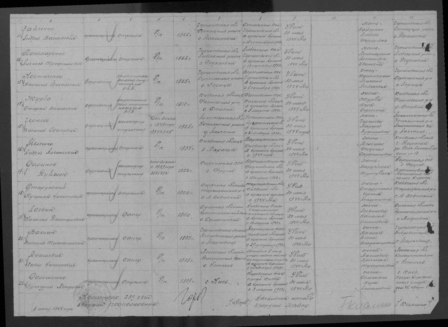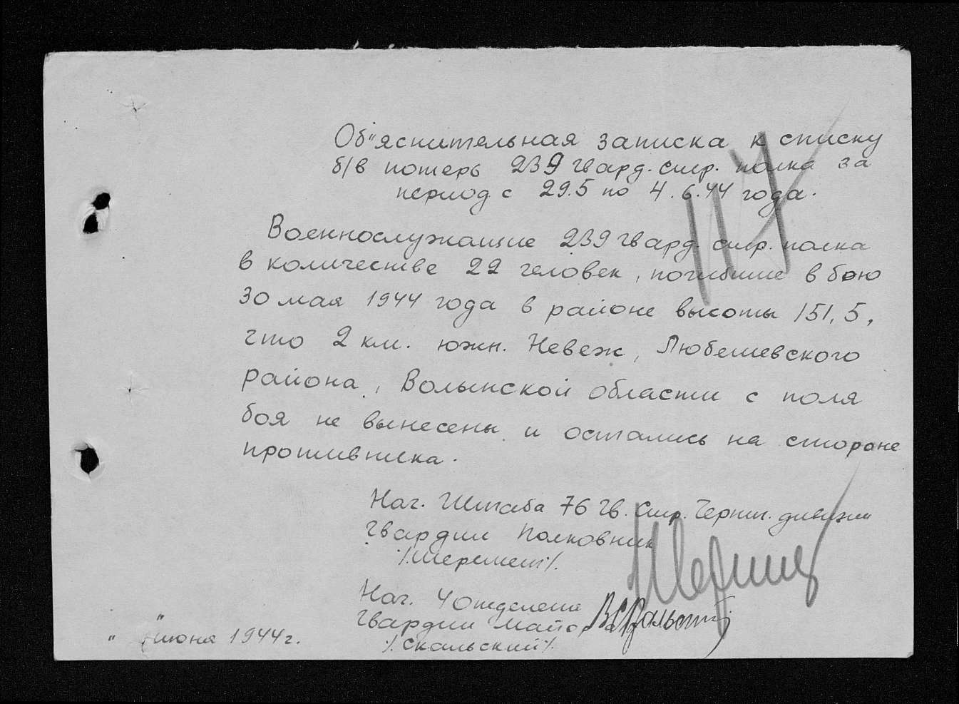 Номер донесения 36350 Тип донесения Донесения о безвозвратных потерях Дата донесения 17.06.1944 Название части упр. 76 Гв. сд